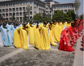 3月26日舞蹈系祭祀剧目《翎子》32名同学,前往陕西师范大学新校区,参加2016年陕西省清明节黄帝陵祭祖公祭活动的祭祀乐舞联排。
