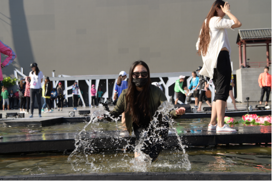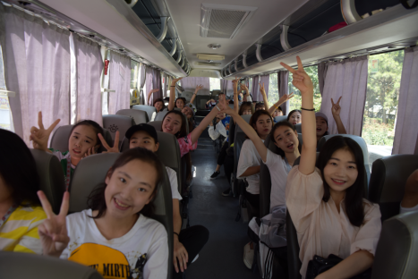 2016年9月11日舞蹈系61名同学高高兴兴乘车前往大唐芙蓉园进行排练