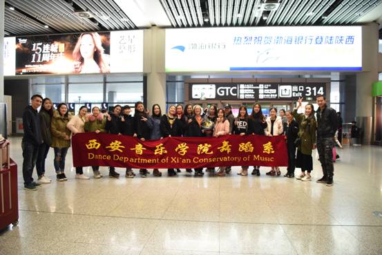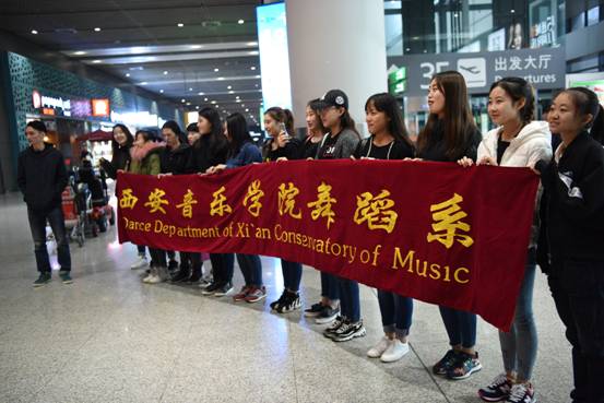 舞蹈系芭蕾教研室的全体教师和20多名学生到咸阳机场欢迎法国现代舞专家来中国西安音乐学院舞蹈系讲学。