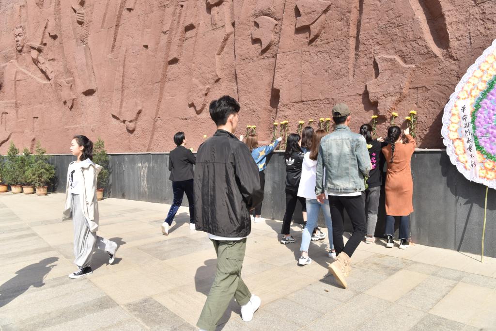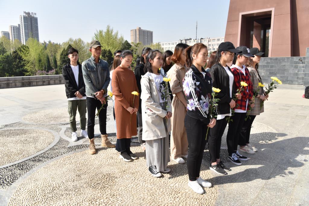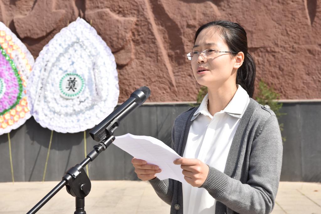 活动现场,同学们集中在烈士纪念馆浮雕广场上,气氛庄重肃穆,全体师生沉重默哀,并向烈士墓敬献花圈。学生代表刘潇娅表达了当代大学生对先烈的敬仰和缅怀之情,表示作为青年一代更应该珍惜当下,树立远大理想,不断提高自身的综合素质,为祖国的繁荣富强献出一份力。教师代表王尚清在发言中,深切表达了对长眠烈士的尊敬和怀念,期望同学们能够继承和发扬先烈们不屈不挠的拼搏精神,肩负起新时代的历史责任和使命。站在烈士纪念碑前全体师生进行庄严宣誓,并敬献鲜花。