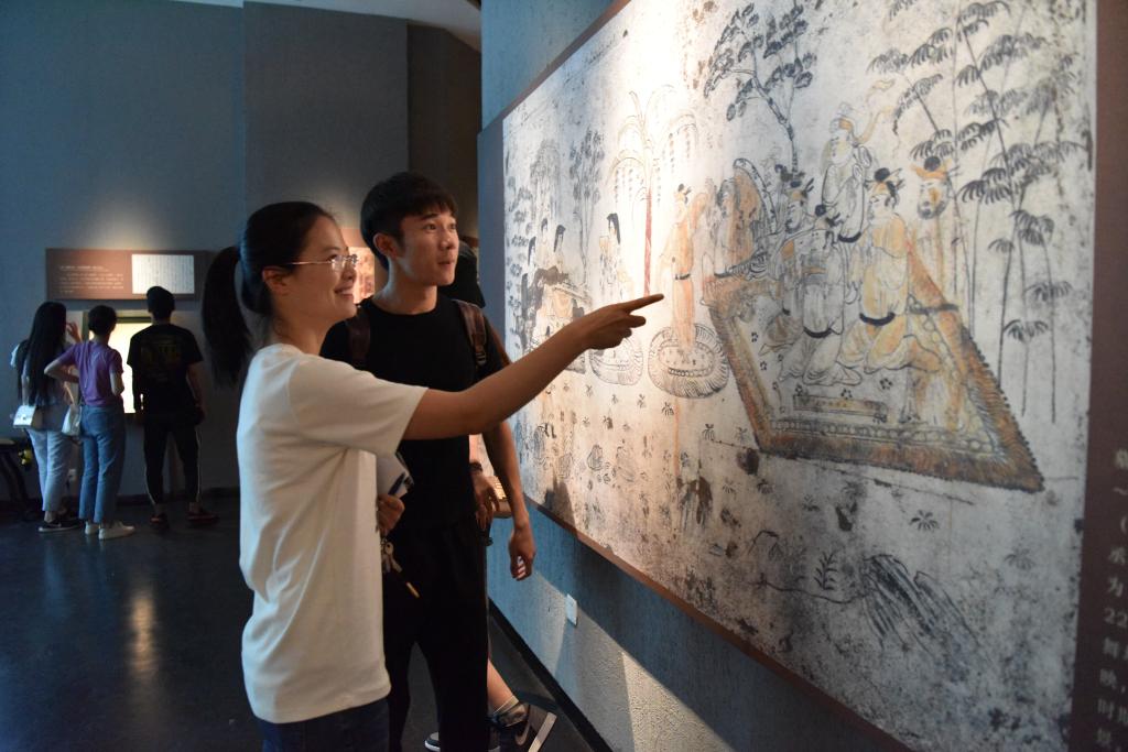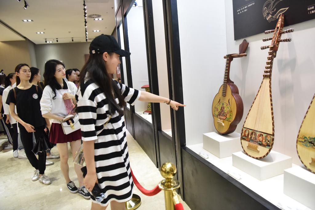 展馆内,在讲解员老师的带领下同学们安静有序,兴致勃勃的观赏了商贷的石磬,西周的编钟,以及绘有乐舞图的唐墓壁画。学习了解了中国古代乐舞发展的历程与丝绸之路上经贸交流和民族融合的轨迹。参观结束后同学们纷纷表示在这些精美的古代艺术品中得到了不同程度的启迪与灵感的迸发,收获颇丰。