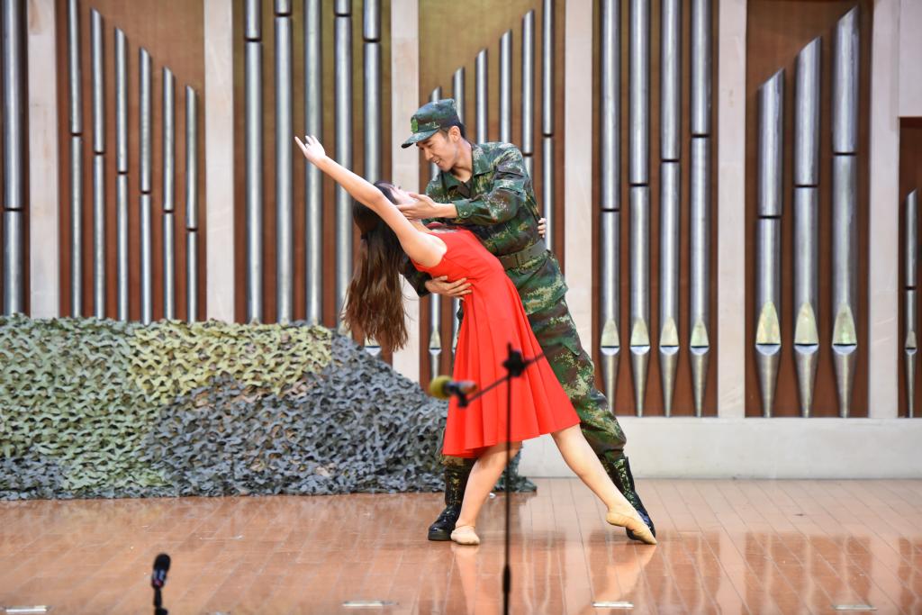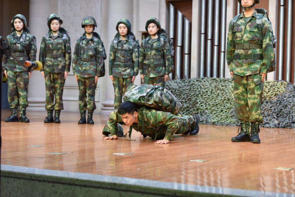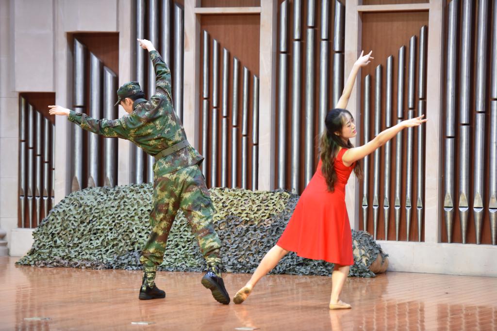 本次参赛作品《起跑线》,是由歌舞教研室戏剧老师武彬彬担任编剧及导演。为了以创新的角度迎合本次大赛的主题,武彬彬老师跳出亲情、友情、爱情等常见题材,大胆尝试以大学生入伍之后的军旅生活为题材。在短短的不到一个月的时间,同学们排除万难,抓紧一切时间参与其中,而为了让同学们更加了解军旅生活,武彬彬老师多次带领学生们亲临部队取材,体验军旅生活,亲身参与军训,与士兵同志们吃在一起,练在一起,同时了解军校大学生的心路历程。在不耽误课程的前提下,同学们利用课余时间进行排练,积极配合、齐心协力,努力向战士们高标准严要求看齐,做到“流血流汗不流泪,掉皮掉肉不掉队!”的部队精神。