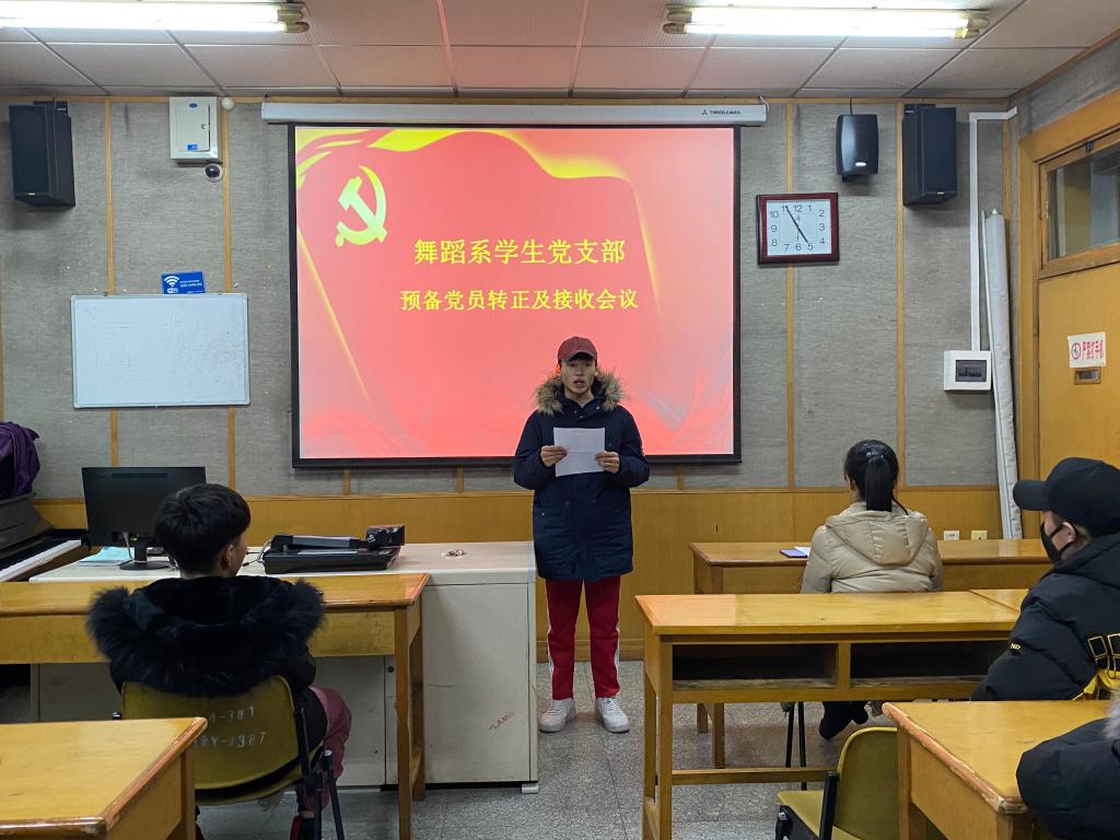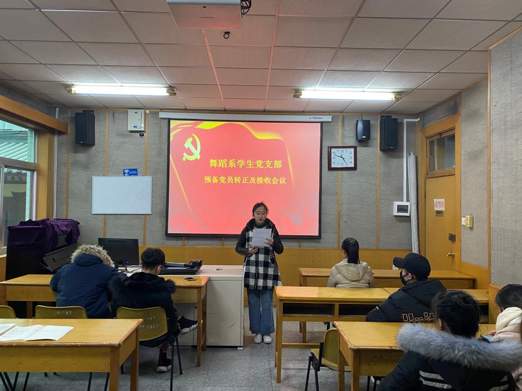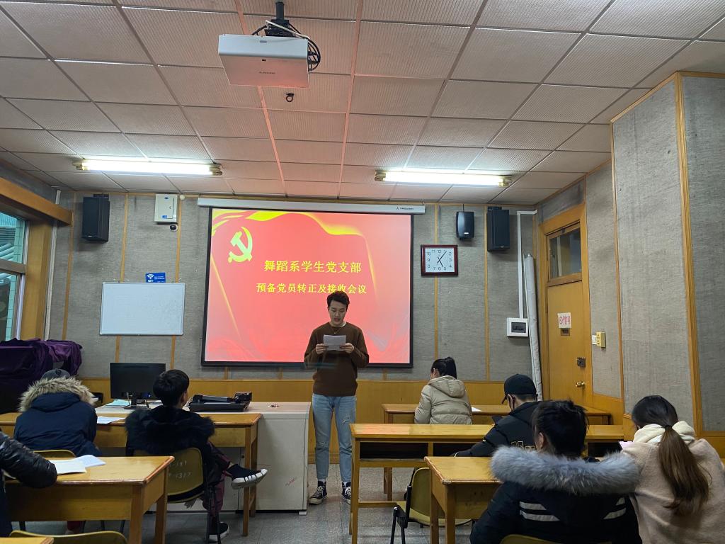 2019年12月12号在四号楼301教室,组织召开舞蹈系学生党支部预备党员转正及接收会议。会议由学生党支部书记王尚清老师主持,全体学生党支部成员参加。