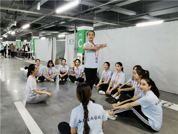 夜幕降临,紧张的排练在持续进行着。随着开幕式倒计时的逐步临近,修改、调整、联排不间断的交替进行。学生们也在老师的教诲中及自己的亲身感受下深刻意识到了国内水平最高、规模最大的综合性体育赛事的责任感、使命感及荣誉感。作为西音的一份子,同学们不辱使命,将以实际行动完成我们的演出任务。