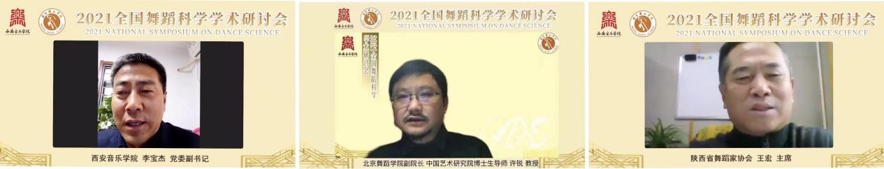 研讨会开幕式上,北京舞蹈学院副院长许锐教授、西安音乐学院党委副书记李宝杰教授、陕西省舞蹈家协会王宏主席发表致辞。中国舞蹈家协会主席冯双白教授发来贺词,祝贺2021全国舞蹈科学学术研讨会成功举办,认为与会发言者高屋建瓴,视野非常开阔,言之有物,学风良好,讲究科学态度,理论模式清晰,更有对中国传统身体文化的观察与运用,同时祝愿西安音乐学院和北京舞蹈学院以及全国的舞蹈学术研究者取得更多成果。