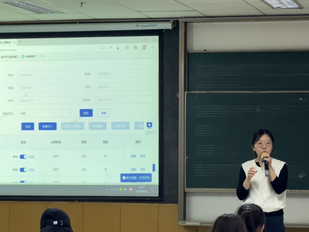 随后,大学生心理援助与研究中心教师孙琳琳、刘佳组织开展2025级大学生心理健康测评和交流活动。老师们引导同学们完成了线上心理测评,并普及了常见心理适应问题的调适方法,强调了主动寻求专业支持的重要性,现场气氛轻松活跃,有效拉近了师生距离,为新生构筑积极健康的心理防线奠定了基础。